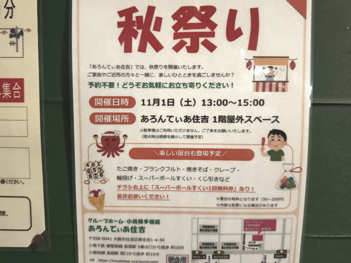南住吉にある「あろんてぃあ住吉」さんで、地域の秋祭りが開催されるみたいです。