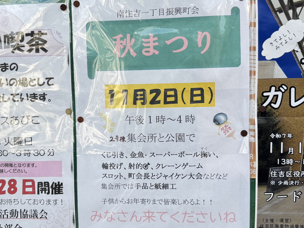 南住吉1丁目振興町会の「秋まつり」が開催されるみたい。