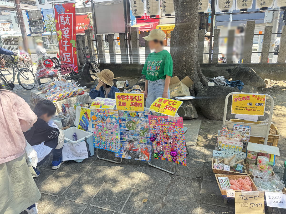 王子神社内。お店や昔あそびとか色々集まってました。