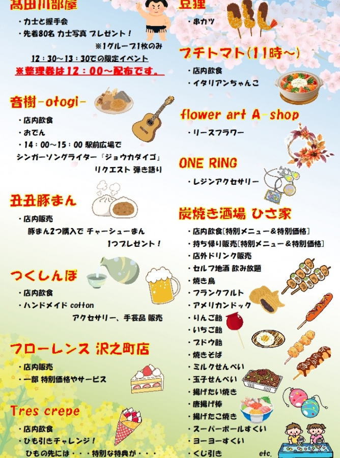 高田部屋の力士もきて握手会とか、チンドン屋とかもくるみたい。