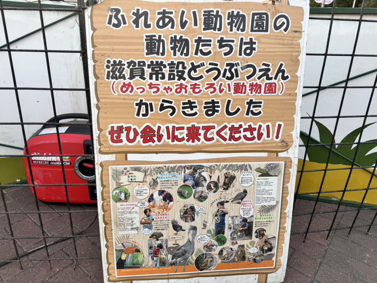 「いっぱいさわれるZOO」ってゆう名前でやってるふれあい動物園は、滋賀の「めちゃおもろい動物園」からきた動物たちとのこと。