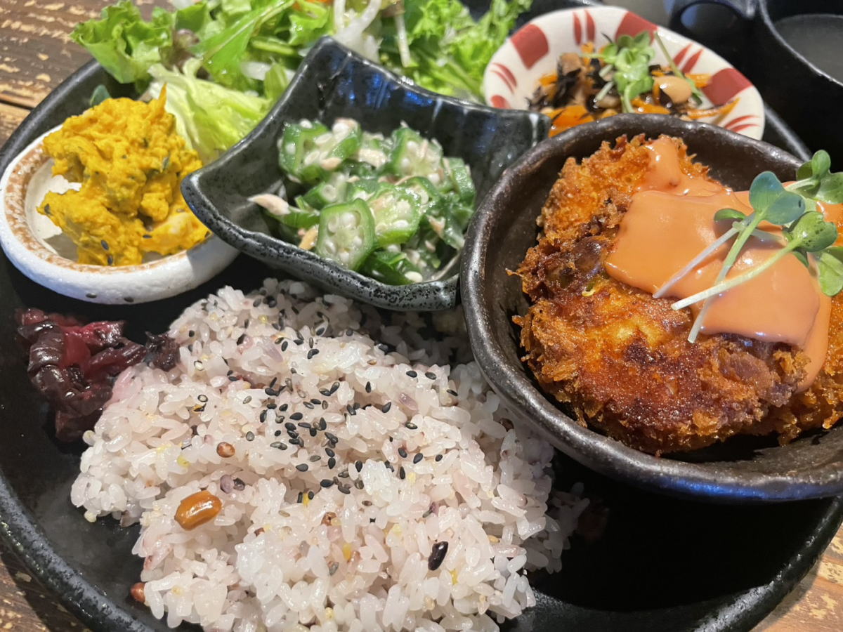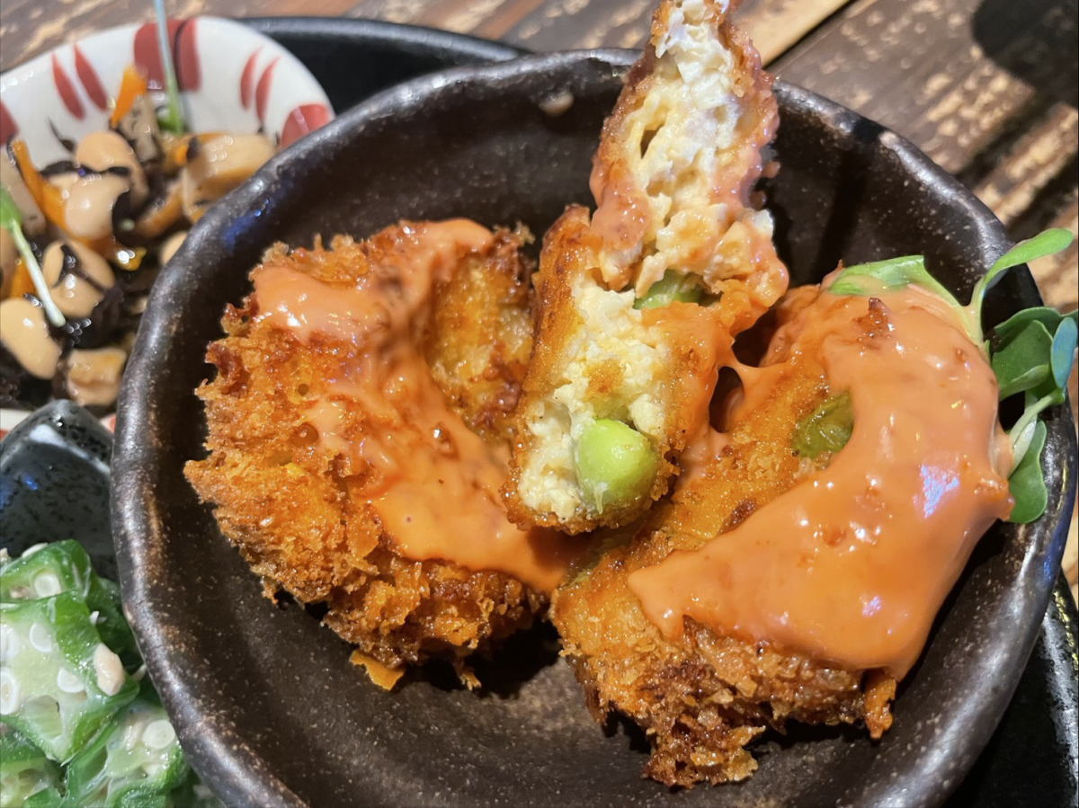 豆腐で作られたコロッケは、オーロラソースの酸味で後味さっぱり。