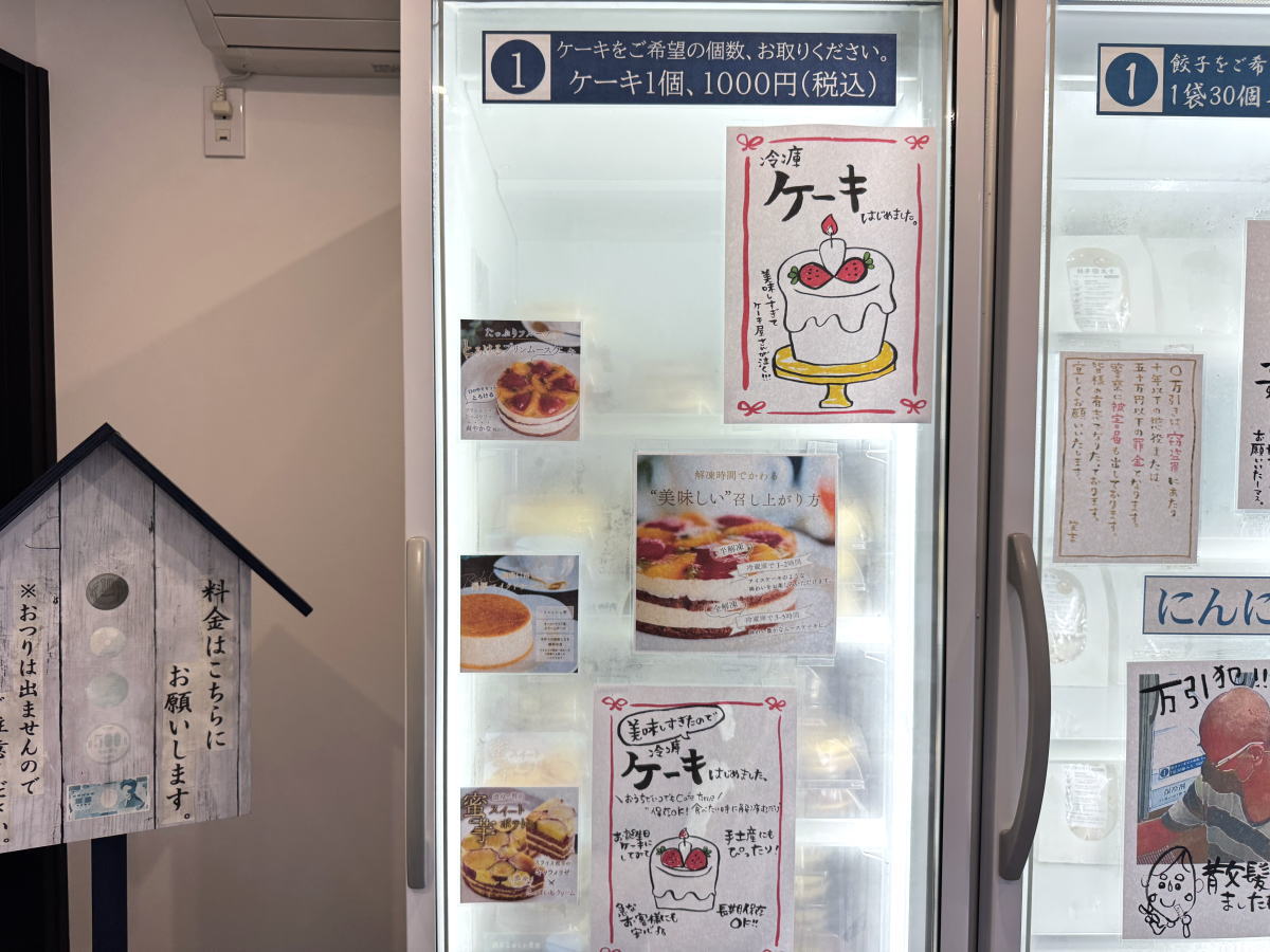 長居駅近くの冷凍無人餃子「笑吉」さんで、いつのまにか冷凍ケーキが販売されてました。