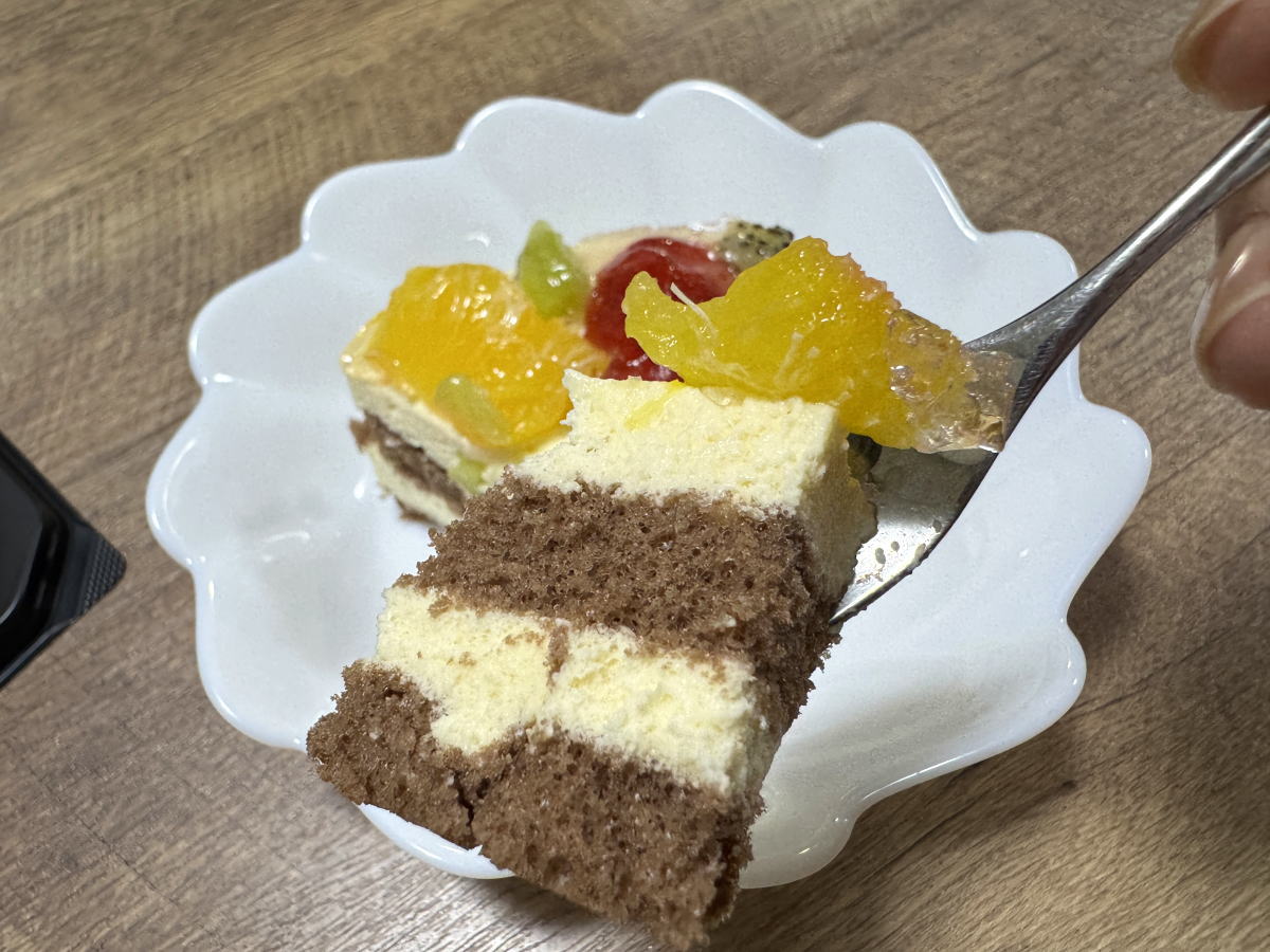 チョコ生地はココアっぽくって、ほんのりビター&しっとり。