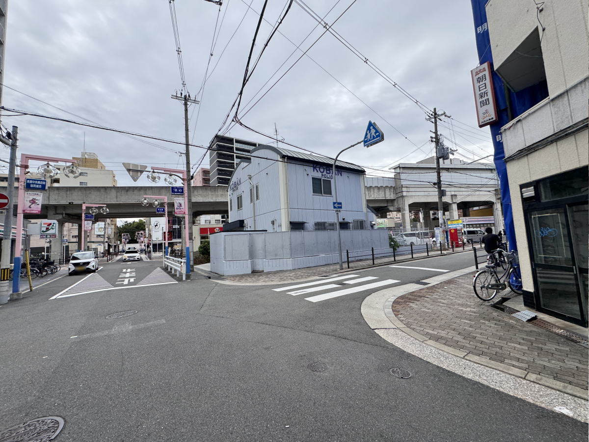 左隣には長居交番、すぐあびこ筋、長居公園です。