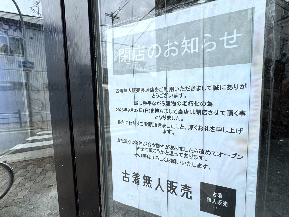 住吉区長居の「古着無人販売24h」さんが閉店してはりました。子どもの古着の方も閉店したっぽいです。