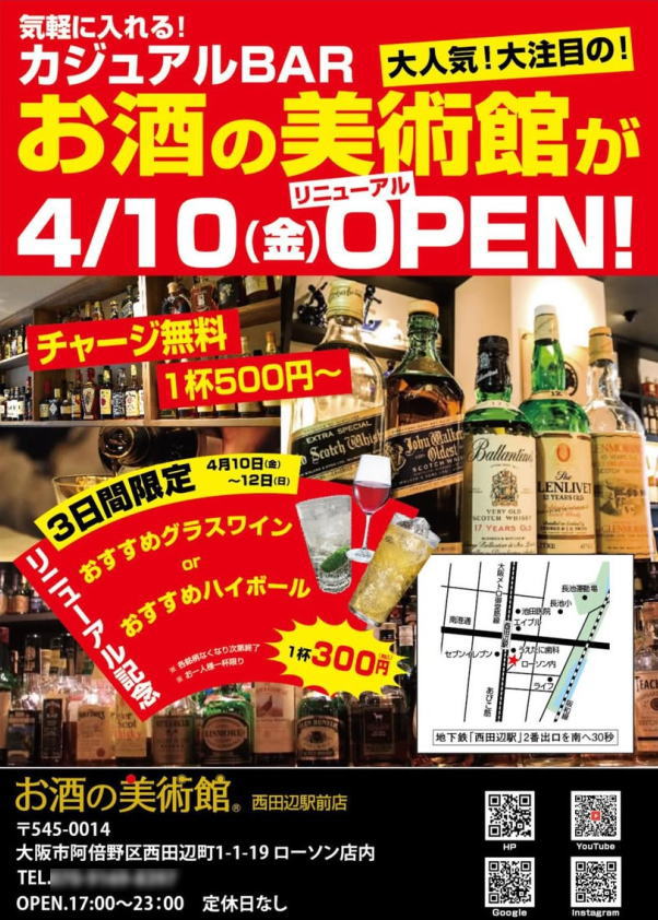 西田辺駅近く「お酒の美術館」がリニューアルオープンしたみたい。
