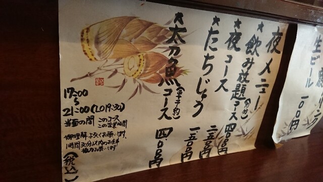 たちじゅうならびに骨せんべいは、移転前からお変わりなく、香ばしい太刀魚を頂戴出来た。