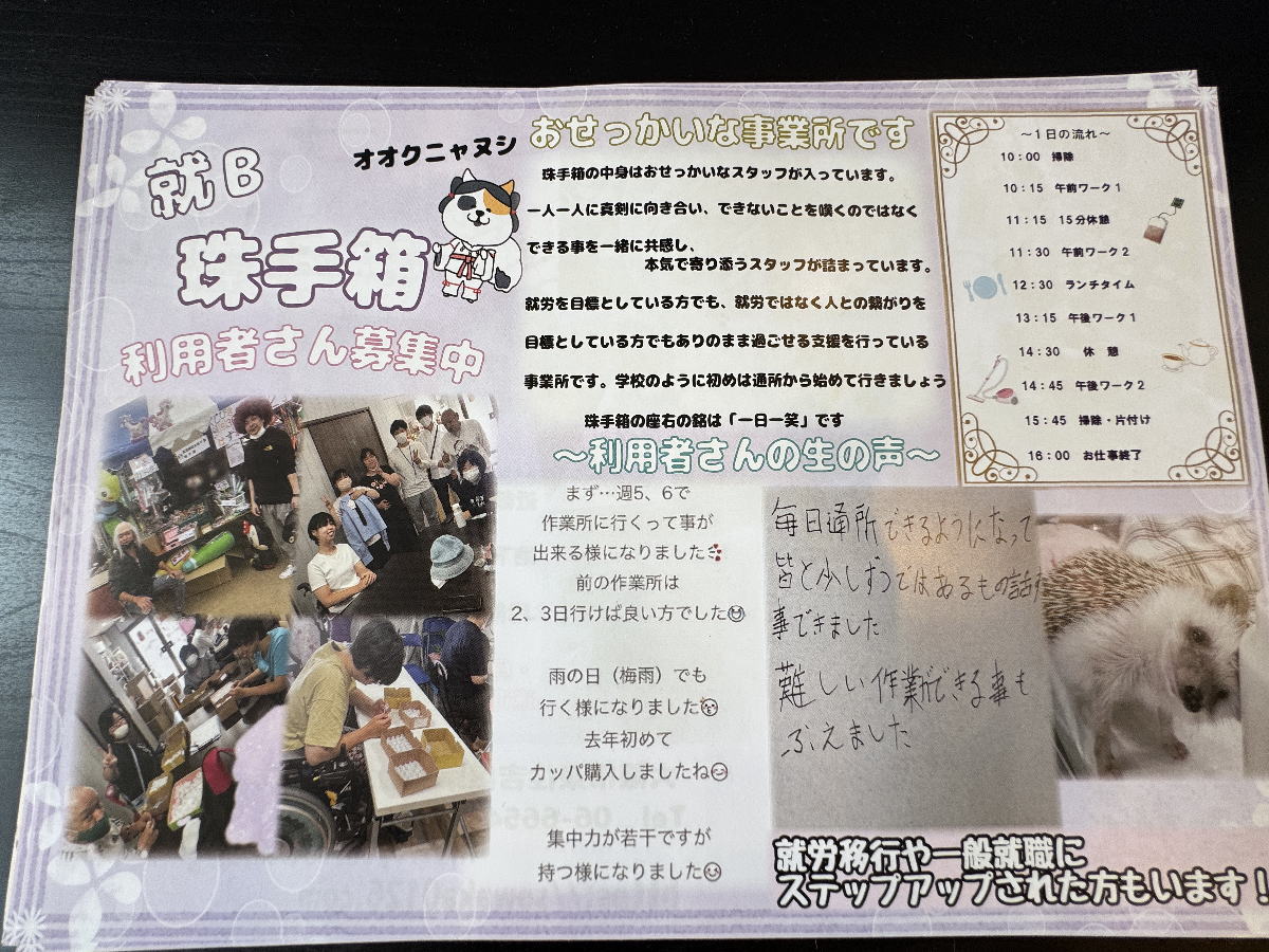 「手毬庵」さんは、東住吉区の就労継続支援B型事業所「珠手箱」さんがオープンされたお店です。