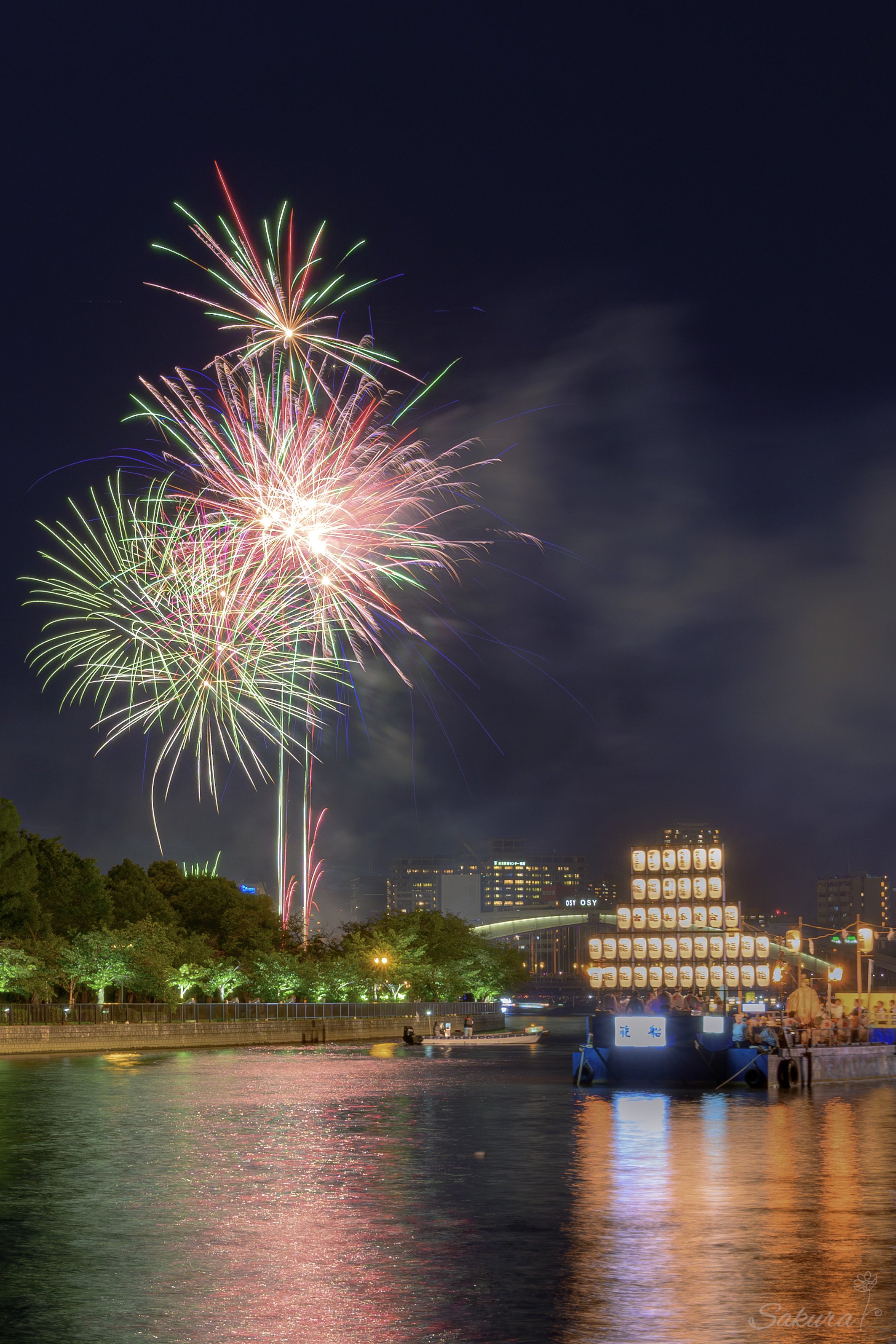 旧堺港・龍女神像側から見た花火↓