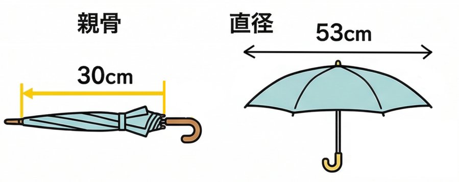 「傘○cm」って表記。これ、広げたときの直径ちゃうかったんです。実は「親骨(骨の長さ)」のこと。